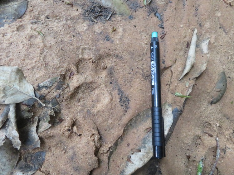 We looked for tracks or scat as sign of felid presence, including jaguar (Panthera onca), puma (Puma concolor), ocelot (Leopardus pardalis), jaguarundi (Hepailurus yagouaroundi), margay (Leopardus wiedii), and oncilla/tigrillo (Leopardus tigrinus).